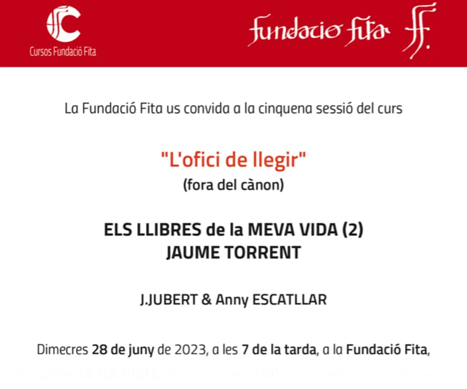 Dimecres 28 de juny a les 7 del vespre a la Fundació Fita. La sessió es complementarà amb l’exposició “Llibres / Objecte” de Pia Crozet
